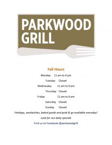 Follow us on Facebook @ facebook.com/parkwoodgrill